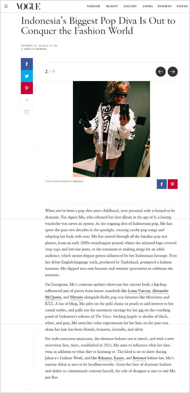 Agnez Mo Masuk Situs Vogue Amerika, Dijuluki 'indonesia's via www.wowkeren.com